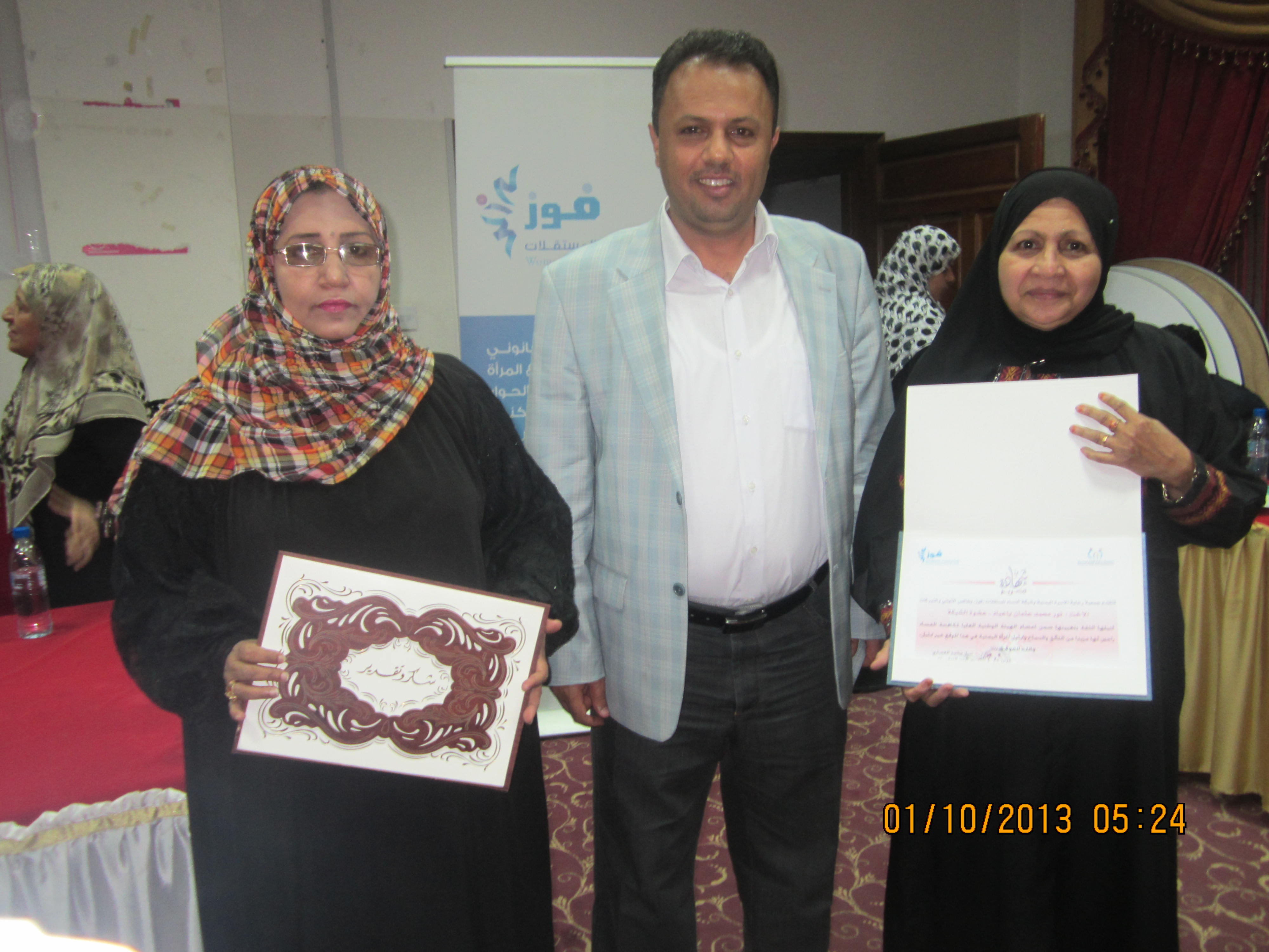 هذا وكانت جمعيه رعايه الاسرة اليمنية وشبكه النساء المستقلات فوز قد كرمت على هامش الاجتماع رئيسه الهيئه