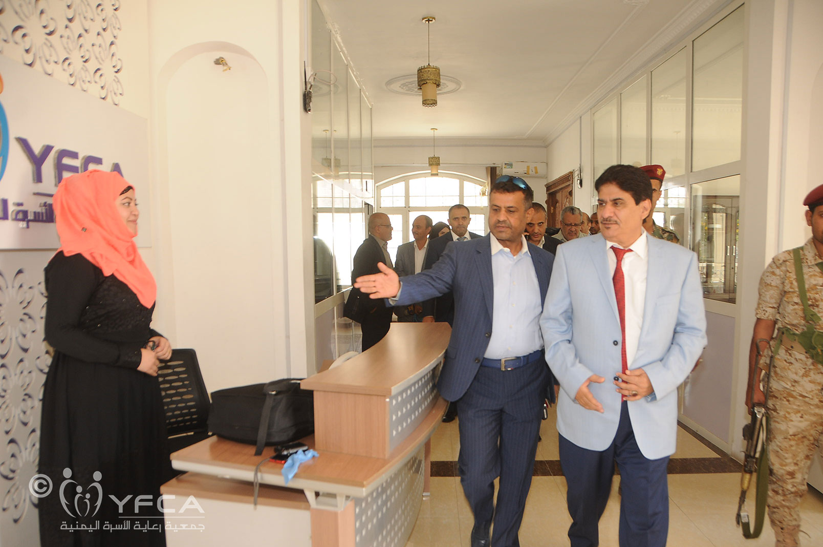 قام مدير منظمة الصحة العالمية في اليمن السيد نيفيو زجاريا ووزير الصحة العامة والسكان الدكتور محمد بن حفيظ بزيارة الى مستشفى الامومة الامنة التخصصي التابع لجمعية رعاية الاسرة اليمنية بمنطقة سعوان بامانة العاصمة حيث قاموا بجولة في مرافق المستشفى والعيادات التخصصية والصحة الانجابية.وابديا اعجابهما بالمستوى الراقي للخدمات الصحية التي يقدمها المستشفى للمواطنين..كما قام مدير منظمة الصحة العالمية ووزير الصحة بزيارة الى المقر الرئيسي للجمعية . وناقشوا مع المدير التنفيذي للجمعية الاخ نبيل العماري و اعضاء الجمعية الخدمات والتدخلات التي تقدمها الجمعية في مختلف المجالات المجتمعية .كما تم بحث مواضيع الشراكة القائمة والمستقبلية بين جمعية رعاية الأسرة اليمنية ومنظمة الصحة العالمية.
