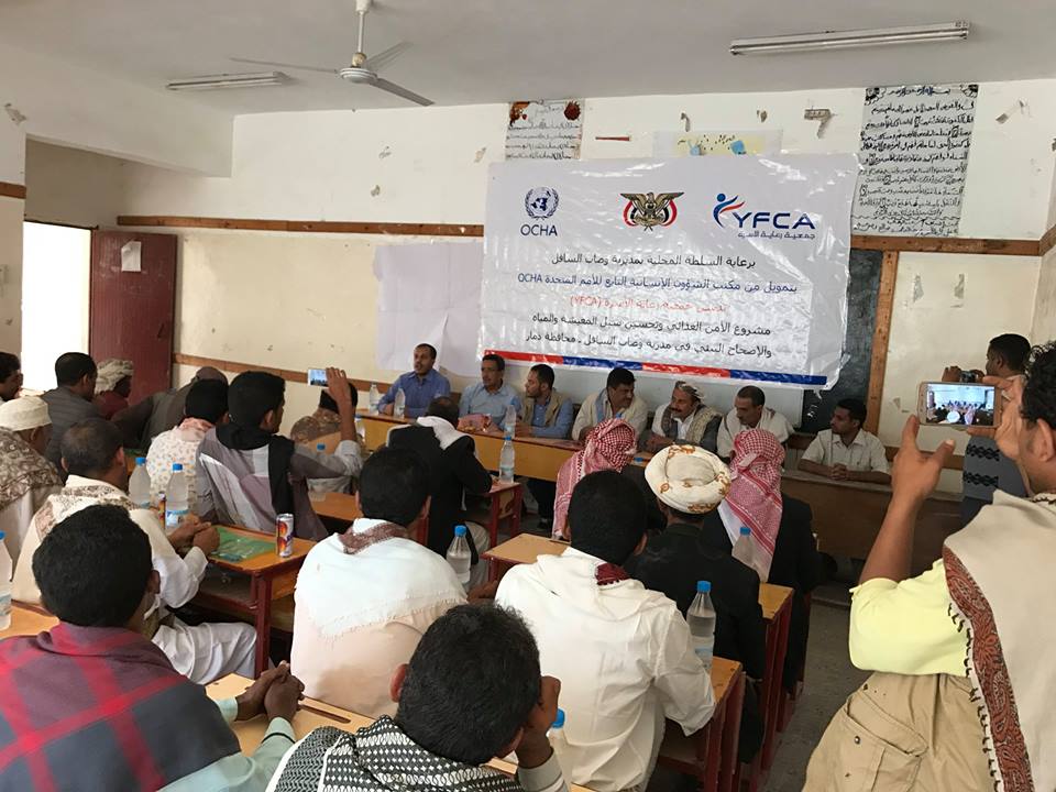 دشنت جمعية رعاية الاسرة (YFCA) العمل في مشروع الأمن الغذائي وتحسين سبل المعيشة والمياه والإصحاح البيئي في مديرية وصاب السافل بمحافظة ذمار و مديرية الحشا بمحافظة الضالع .المشروع تنفذه الجمعية بتمويل من مكتب الشؤون الانسانية التابع للامم المتحدة (OCHA) ويستمر لمدة عشرة شهور .
