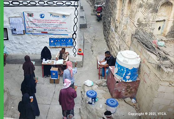 بدأت جمعية رعاية الأسرة اليمنية توزيع المواد الغذائية في (محافظة المحويت - مديرية الطويلة) و (محافظة تعز - شرق صبر الموادم ، صاله ، المخا ، مديرية مقبنة الشرقية ، الشمايتين ، مشرعة. وعدنان ، جنوب صبر الموادم ، ومنطقة مقبنة الجنوبية) من بين 131 نقطة توزيع للأغذية من خلال 144 مستودعًا وأكثر من 1018 موظفًا ميدانيًا لتوصيل المساعدات الغذائية إلى أكثر من 47000 أسرة ضعيفة ، والسلة الغذائية تتكون الحصة من 75 كجم من دقيق القمح ، و 8 لترات من الزيت النباتي ، و 5 كجم من البقوليات ، و 2.5 كجم من السكر ، و 0.5 كجم من الملح.