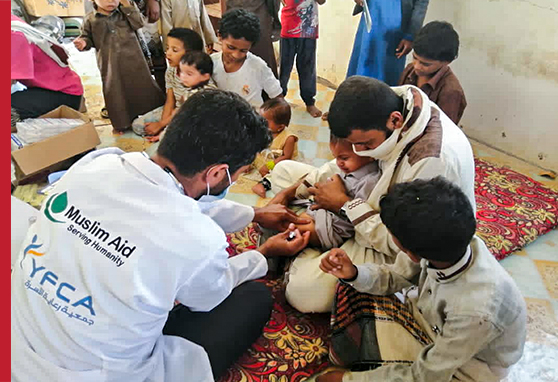 Integrated health outreach activities continue to bring primary health services, including free medicines, immunization services, antenatal care consultations and awareness sessions, to the most vulnerable people who are living in the suburban villages of Rakhia and Al Abr districts and can’t afford transportation cost to the supported health facilities.