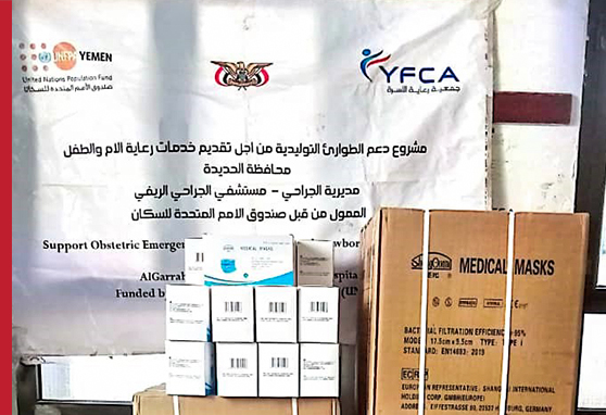 YFCA as an implementing partner with UNFPA continues supporting reproductive health services in 23 health facilities spread over 5 governorates (Amant Al-Asimah, Saadah, Al-Hudaydah, Al-Dhalea, and Ibb). On a quarterly basis activity of this ongoing project, all targeted health facilities have received RH essential medicines, medical supplies, and commodities, and RH kits to enhance health facilities operation and functionality.