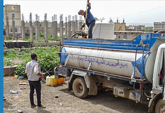 Within the activities of WASH YHF#17900 project and under the framework of Improving access of IDPs, host communities and most vulnerable individuals to safe drinking, domestic water and sanitation services in Qatabah, Al-Dhale Gov. YFCA Intervention is located in Qa’tabah district, Al-Dhalee Governorate in which a lot of residents are very poor and large proportion of them are IDPs. People in this area don’t have enough access to either safe drinking water or domestic water and they cannot afford the price of water trucks, So the Provision of emergency temporary water trucking intervention is highly needed to provide the minimum need (15-20 L/person/day) for the IDPs and most affected people there. Moreover, water trucking was launched with the participation of the selected contractor who offers water trucks to move water from the source (wells, tanks) to the water points in the targeted IDPs sites; Western Sahda A, Western Sahda B, Naqil Al-Shim 1, and in the presence and observation of YFCA team. The objective of this activity is to provide emergency temporary access to clean drinking water with a quantity of 20,000 Liter/ day for three months (90 Days) at the three targeted IDPs sites in Qa’tabah District, Al Dhalee Governorate. In addition to that it helps taking off some burdens of women and little girls who go far distances to bring water leaving school. Moreover, the water trucking activity started on June 24th,2021 and will finish on September 21st, 2021. Out of this activity, 1124 individuals of IDPs access safe water every single day. Since the beginning of this activity, 1.660.000 liters. of water has been provided to IDPs targeted camps.