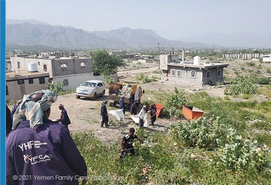 Within YHF#17900 Project, which is a comprehensive project of Water and Sanitation for IDPs and Hosting Communities in Marib city, Marib governorate, Qatabah and Alhusha, Aldhale’e governorate, funded by Yemen Humanitarian Fund (YHF) and implemented by Yemeni Family Care Association (YFCA) and under the framework of durable provision, rehabilitation and maintenance of water supplying systems for affected population, cleaning campaigns are conducted in Qa’tabah at IDP sites and the city streets, and neighborhoods.