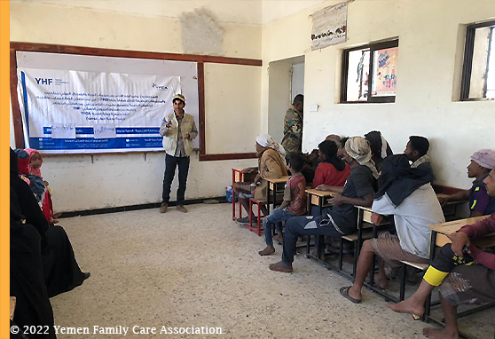 Through the fund of the Yemeni Humanitarian Fund (YHF), and along with the CCCM sustainability pathway, YFCA implemented the activity of promoting the inhabitants' awareness by enlightening the IDPs at the targeted sites and enriching their mentality with several topics. Consequently, seven sites management coordinators (SMCs) were recruited at both Ibb and Taiz governorates. They actively conducted awareness and educational sessions for the IDPs on psychological services support PSS, legal support, Hygiene promotion, protection, fire and flood mitigation, site maintenance, complaints and feedback mechanism, the importance of education, COVID19 ,,, etc. A total of 80 sessions were held in 16 sites at Al-Dhehar, Dhi-Sufal districts of Ibb governorate and Maqbanah, Mawyah, Same'e, Altaizziyah and Demnat Khadeer districts of Taiz governorate. Moreover, the total number of individuals who benefited from this activity is 2306 individuals.