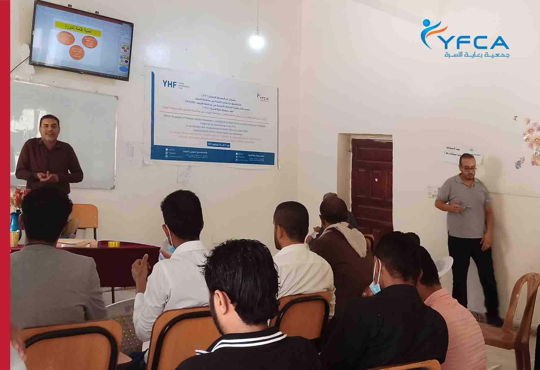 YFCA conducted training for 14 health workers; 5 females and 9 males, of two HCs in al-jawf governorate of technical capacity-building program in 3 main subjects: