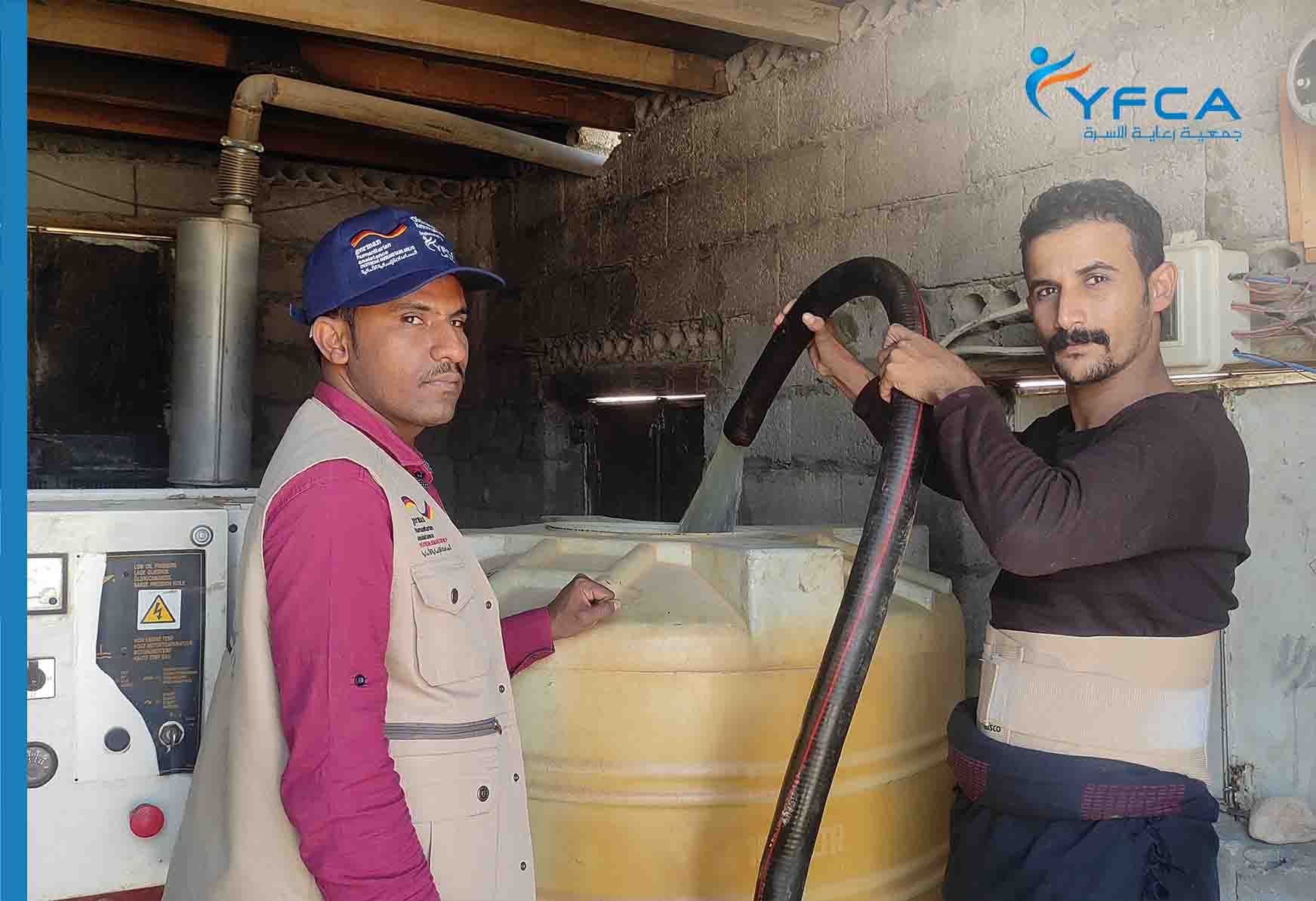 In coordination with General Authority for Rural Water Projects (GARWSP), Yemen Family Care Association (YFCA) provided three water wells in two districts - Shabwah Gov. (Al-Shaq & Eiadh water supply systems in Jardan district and Al-Walgah water supply system in Ataq district) with total operational support (fuel) of 2,600 liters for (Oct/2022). The total targeted beneficiaries from this activity are 12,425 individuals.
