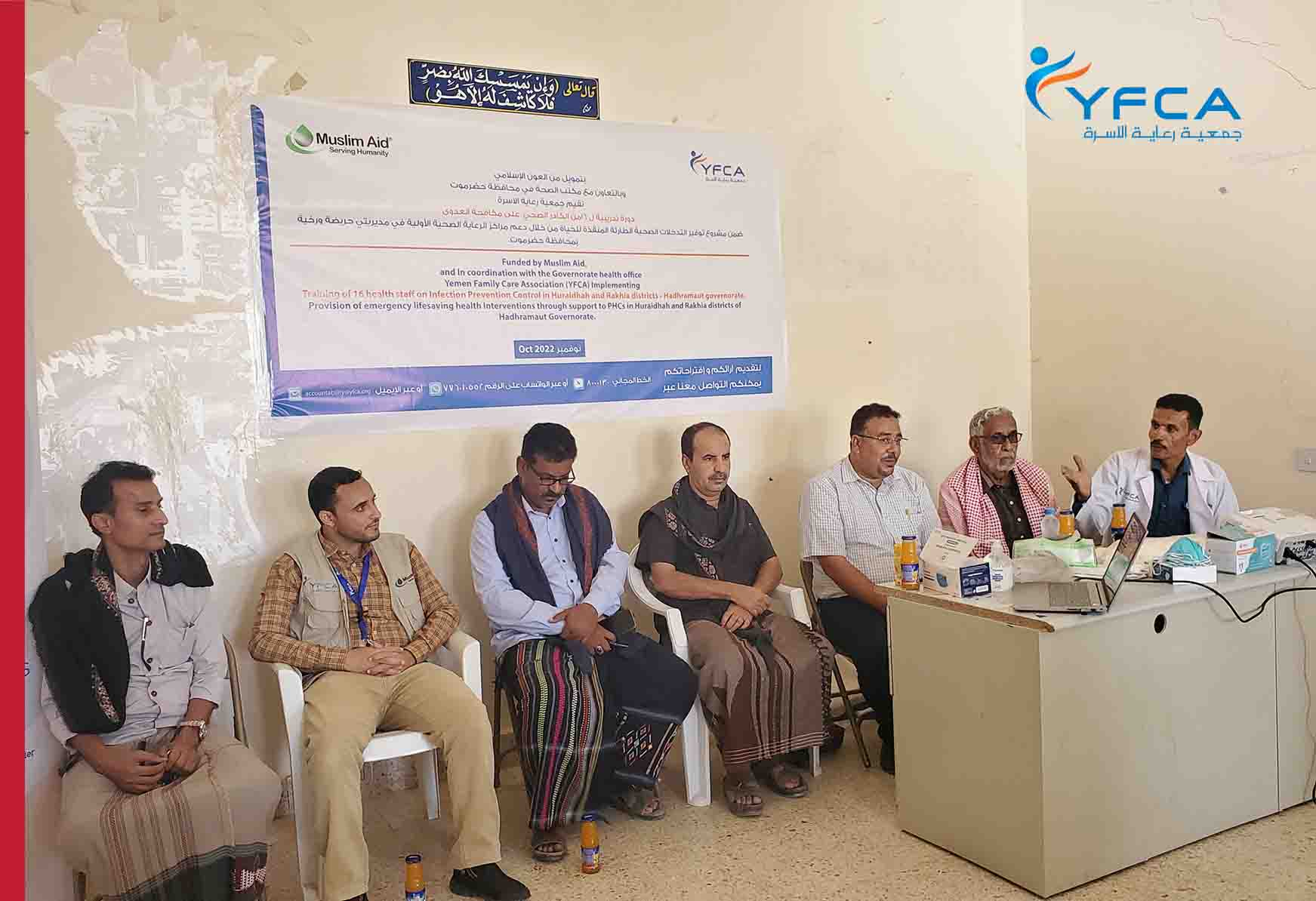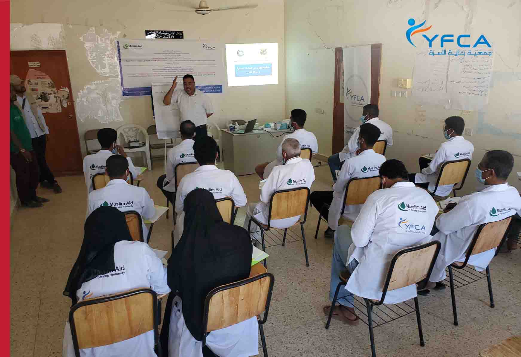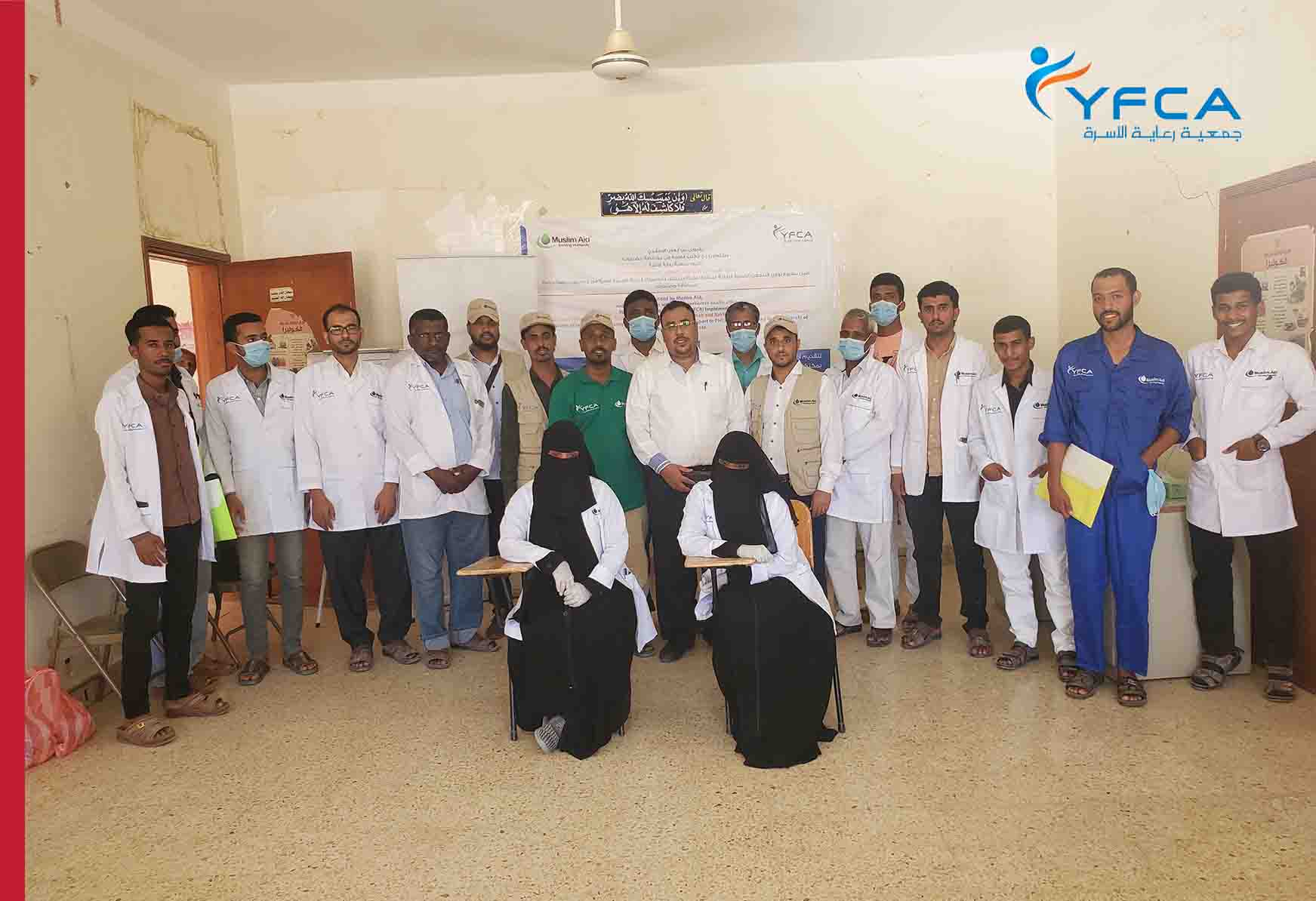 As part of the project activities of Muslim Aid project (MAUK), Yemen Family Care Association (YFCA) in coordination with the Health Office of Hadhramout governorate, held a training course on the basics of Infection Prevention and Control (IPC). 16 members of the health centers staff at Huraidhah and Rakhiah districts attended the training.