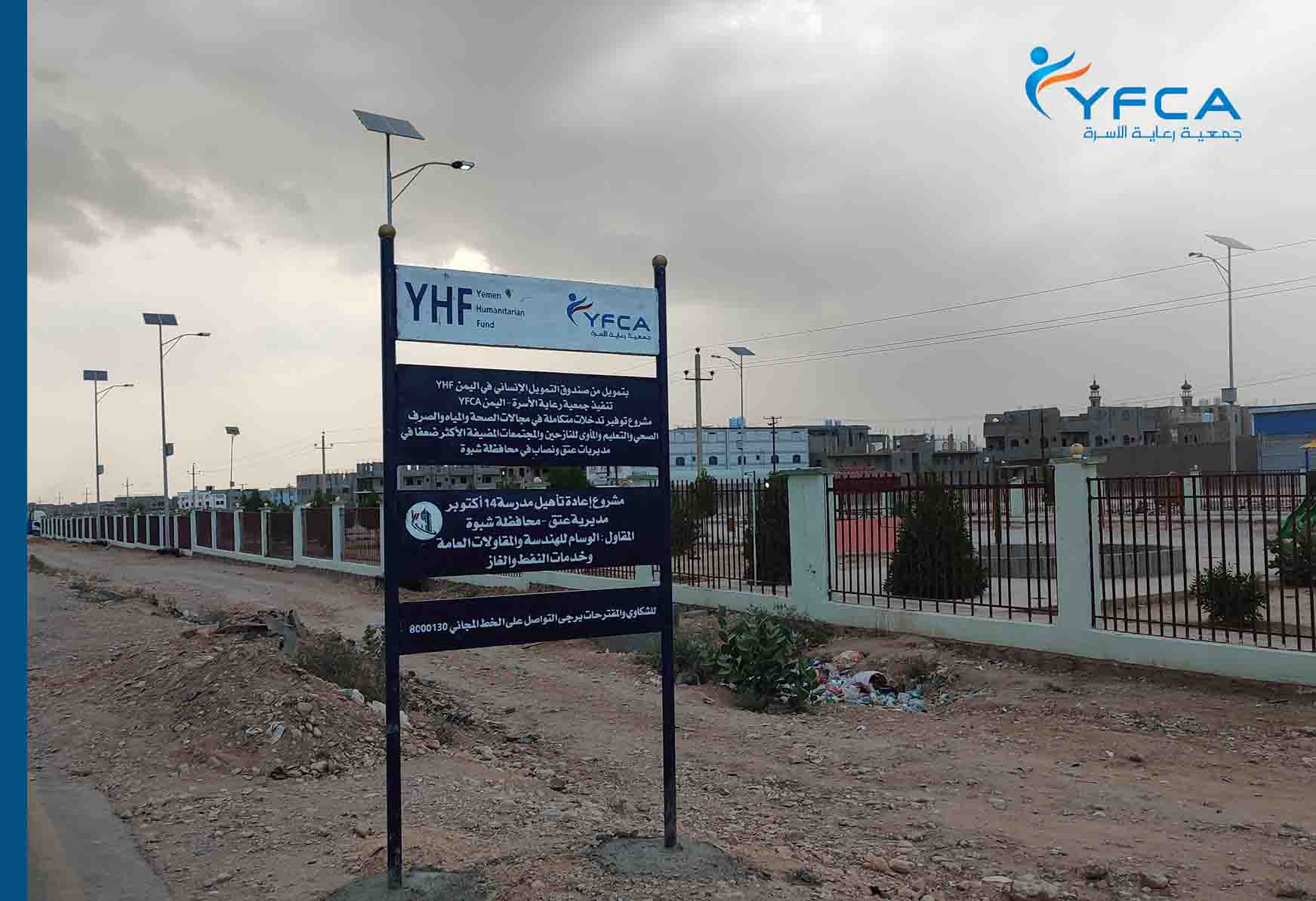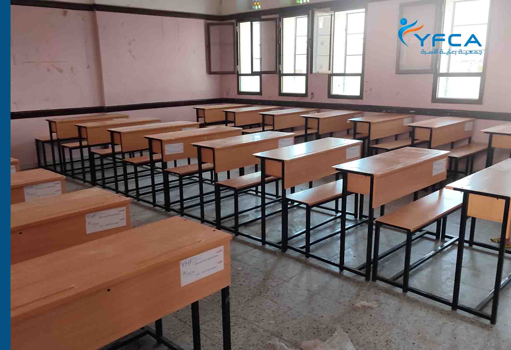 Yemen Family Care Association (YFCA) had completely accomplished the intervention of rehabilitating the buildings and gender-sensitive WASH facilities of Arwa and 14 October schools in Al-Ataq district of Shabwah Governorate. Furthermore, and as a final phase to achieve the main target of ensuring access to a safe and inclusive learning environment, YFCA provided the schools with school furniture and equipment, including desks, chairs and boards. Out of this intervention, around 2662 school-aged girls and boys were prevented from the risk of violence and felt safe and supported in their pursuit of knowledge.