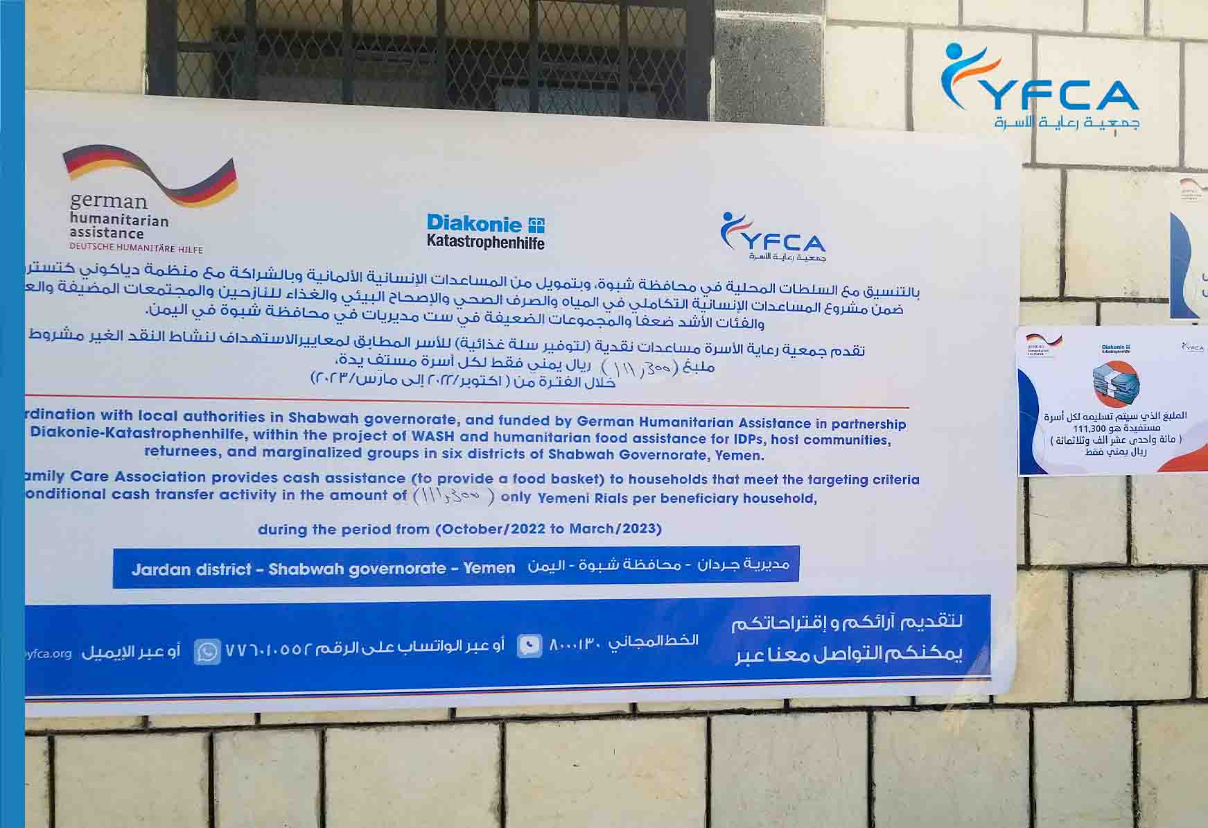 UCT activity is considered as one of the activities in the framework of the ongoing project of WASH and humanitarian food assistance for IDPs, host communities, returnees and marginalized groups in six districts of Shabwah Governorate-Yemen, which is funded by the German Humanitarian Assistance (AA) in partnership with Diakonie Katastrophenhilfe (DKH).