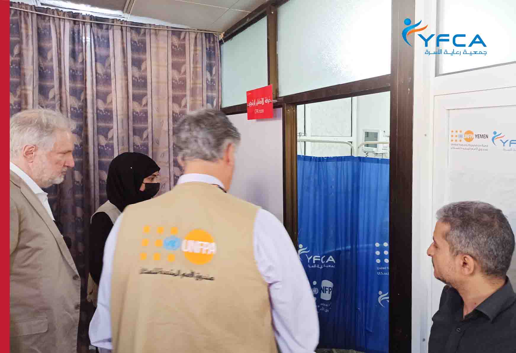تشرفت جمعية رعاية الأسرة بالترتيب لزيارة رسمية لمستشفى السبعين بأمانة العاصمة من مسؤولين كبارفي المجال الإنساني يوم الخميس الماضي، يتمثلون في نائب ممثل صندوق الأمم المتحدة للسكان السيد هشام ناهرو، ومسؤول مشروع الصحة الإنجابية في الصندوق السيد وجدي محسن، ومدير منطقة الشرق الأوسط في الإدارة العامة الأوروبية للحماية المدنية وعمليات الإغاثة الإنسانية السيد أندرياس باباكونستانتينو.