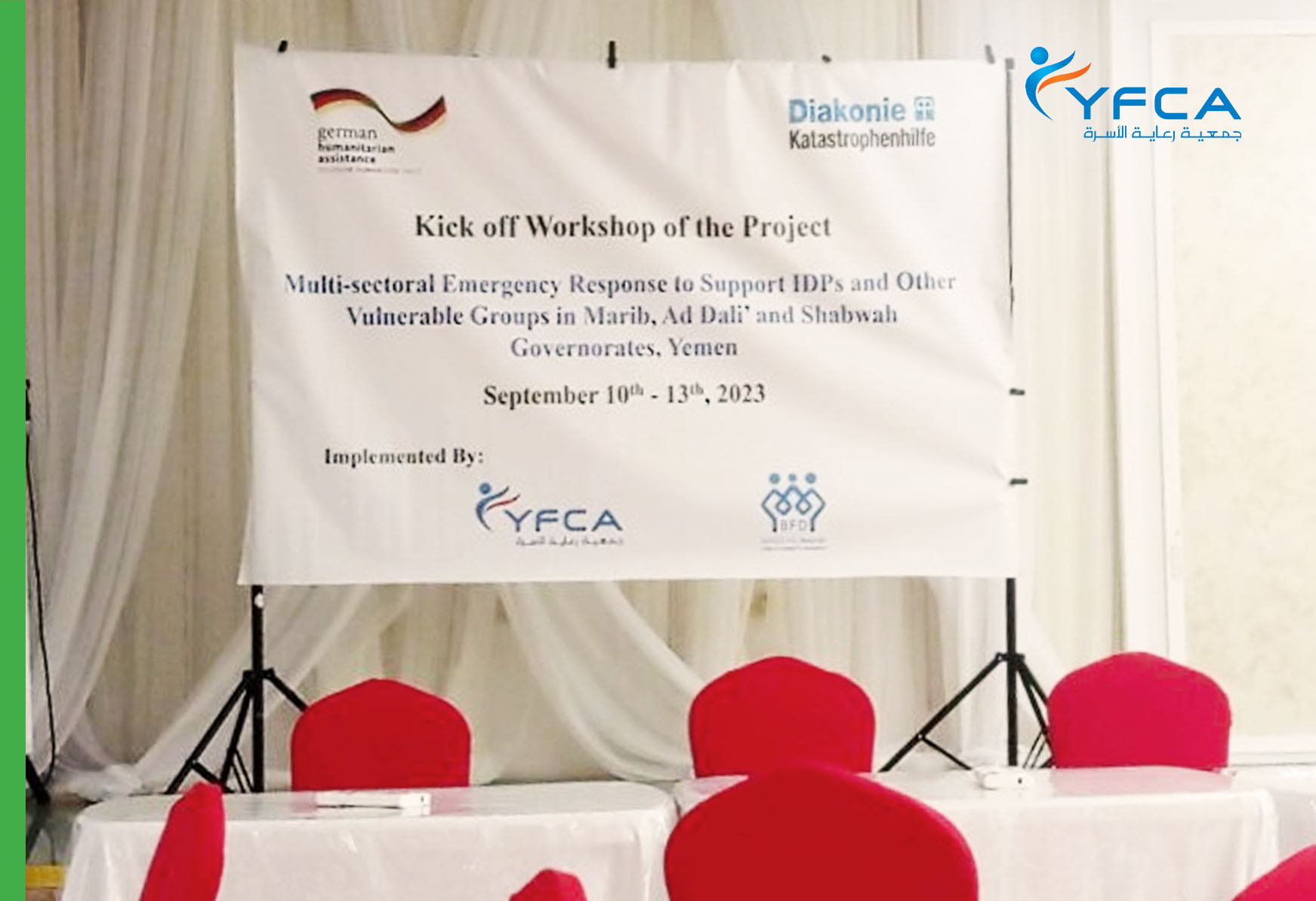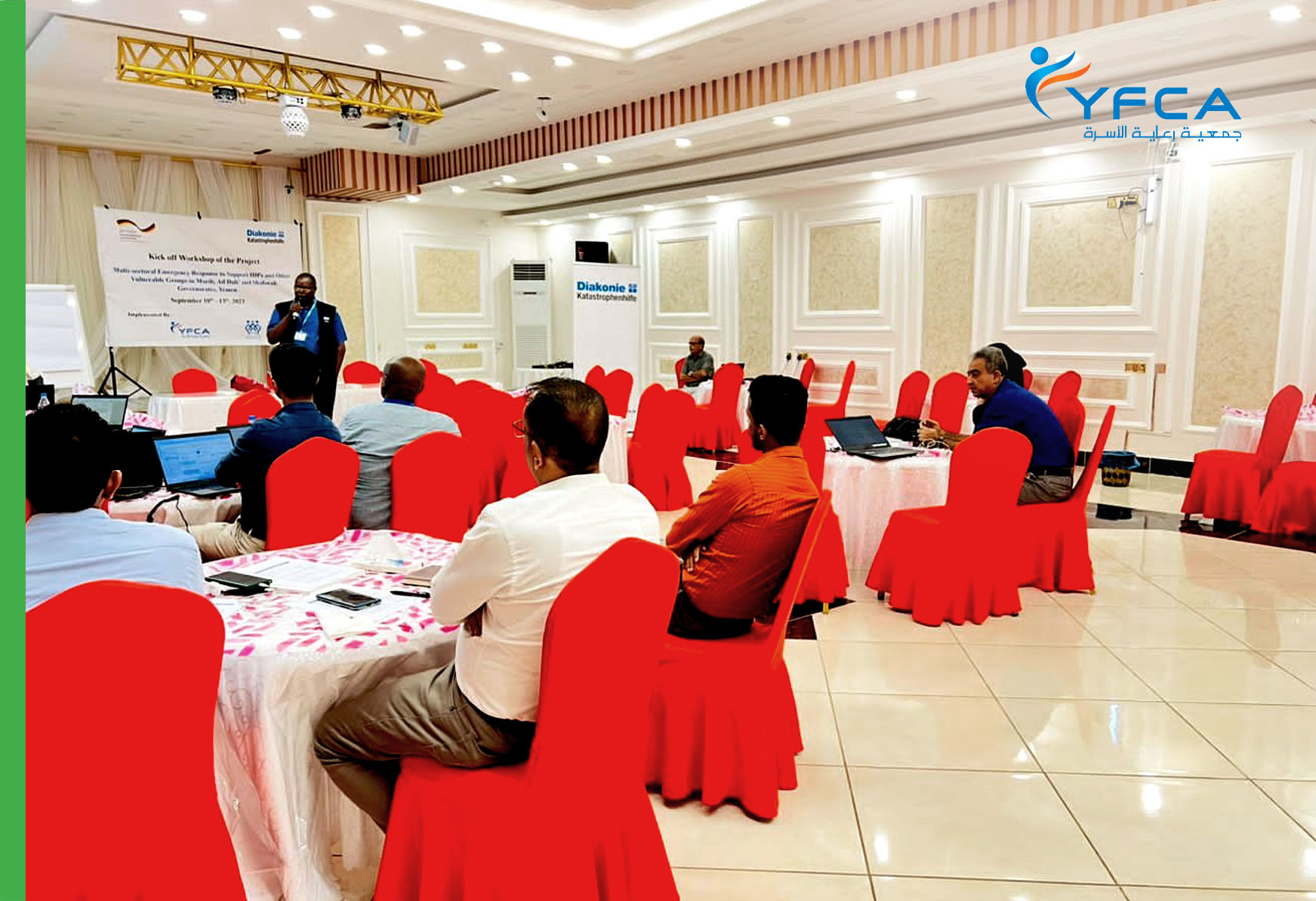 تُعد ورشة العمل الافتتاحية خطوة مهمة نحو التنفيذ الفعال للمشروع حيث يلتزم فريق جمعية رعاية الأسرة DKH بالتعاون والتنسيق مع DKH لضمان نجاح المشروع، والذي من خلاله، سيحصل الأفراد الأكثر احتياجًا في محافظتي الضالع وشبوة على الدعم والموارد التي يحتاجون إليها بشكل عاجل.