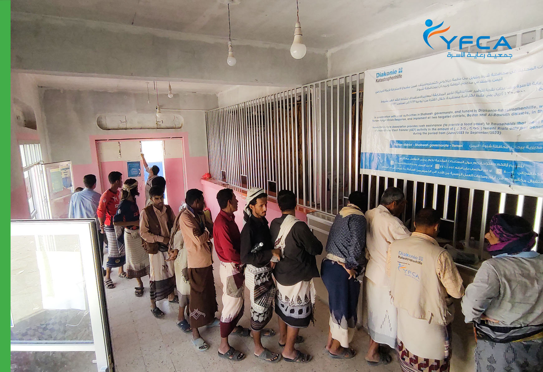 وزعت جمعية رعاية الأسرة الدورة السادسة من المساعدات النقدية على 200 أسرة محتاجة في مديرية بيحان بمحافظة شبوة، وذلك ضمن إطار جهودها لمواجهة أزمة الأمن الغذائي في اليمن. تعد المساعدات النقدية جزءًا من نشاط التحويلات النقدية غير المشروطة، وهو أحد الأنشطة في إطار المشروع الجاري للاستجابة لأزمة الجوع في اليمن، بتمويل من .DKH