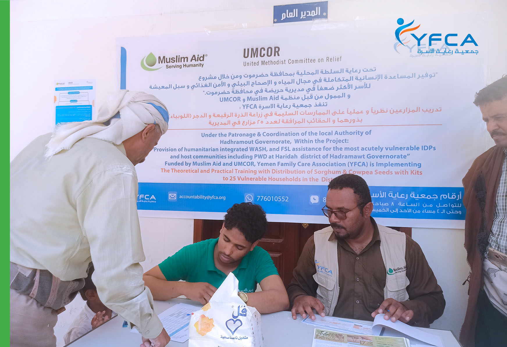 نفذت جمعية رعاية الأسرة بتمويل من منظمتي العون الإسلامي وUMCOR الجولة الأولى من نشاط كاش بلس (Cash Plus) في مديرية حريضة بمحافظة حضرموت. يهدف هذا النشاط إلى دعم المزارعين من خلال تقديم مساعدات نقدية قدرها 135,500 ريال يمني لـ 25 من المزارعين المستهدفين حيث وسيساعدهم المبلغ المقدم في تغطية احتياجاتهم الأساسية خلال دورة المحاصيل، مما يعزز المرونة والأمن الغذائي لهم ولعائلاتهم.