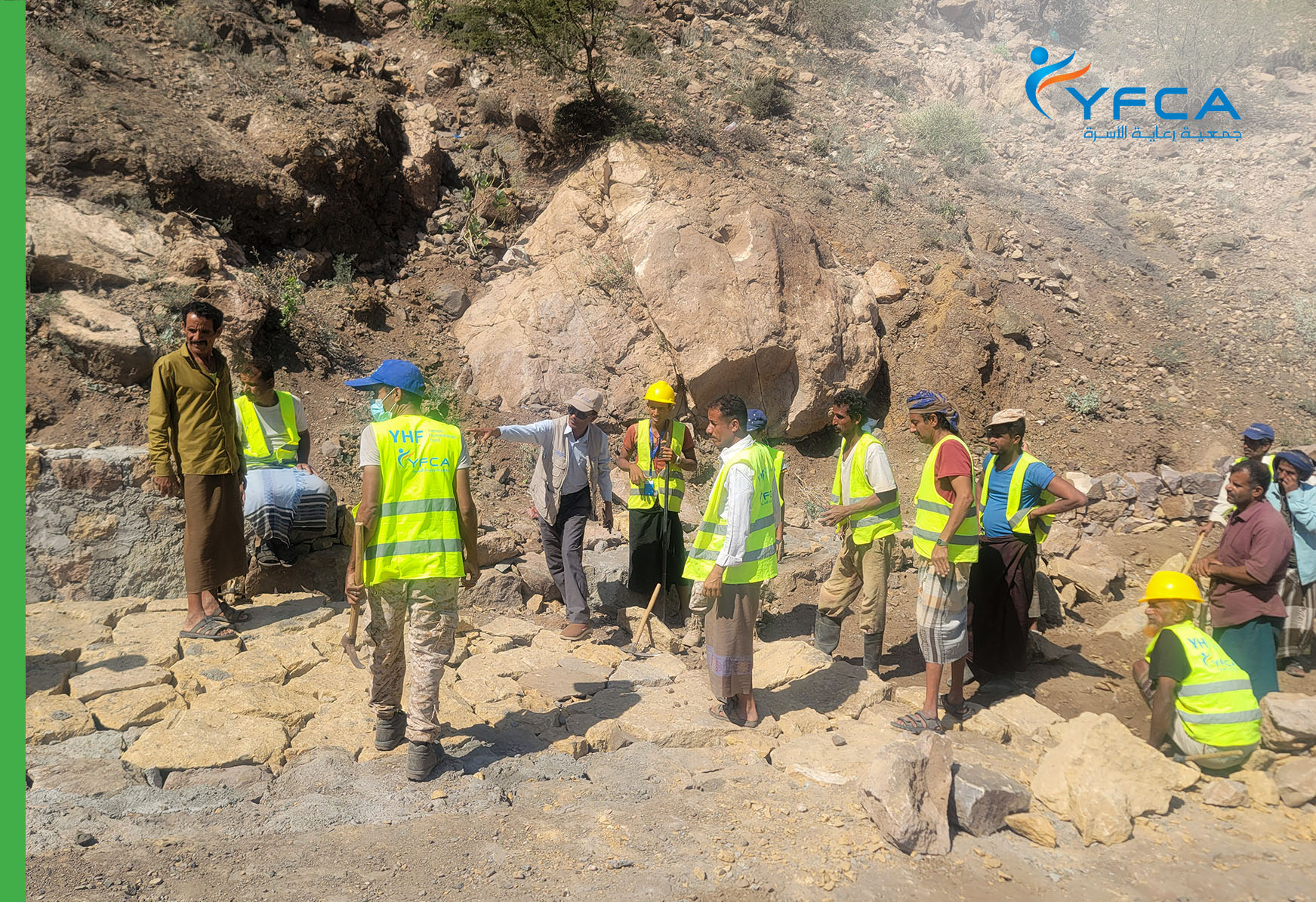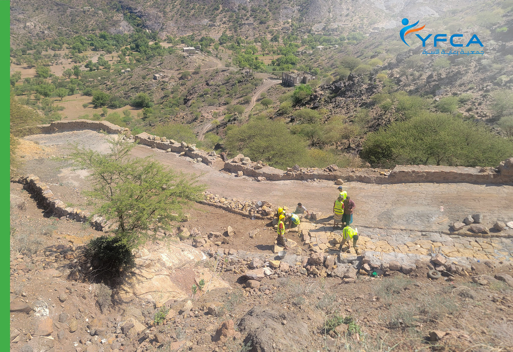 نفذت جمعية رعاية الأسرة نشاط النقد مقابل العمل في حورة غنية، وهي منطقة تقع في مديرية الأزاريق، محافظة الضالع، كجزء من مشروع توفير خدمات الصحة الأساسية المتكاملة، والأمن الغذائي وسبل العيش، والمياه والصرف الصحي للنازحين والفئات الضعيفة الأخرى في مديرية العبدية بمحافظة مأرب ومديرية الازارق بمحافظة الضالع بما يتماشى مع حزمة التدخلات المتكاملة للحد من مخاطر المجاعة. ويهدف هذا النشاط إلى التخفيف من الصعوبات الاقتصادية التي يواجهها المجتمع وتعزيز صموده. وقد تم اتخاذ هذه الخطوة الهامة نحو معالجة الفقر في حورة غنية، إلى جانب القرى المحيطة بها، والتي كانت تعاني من معدل فقر ينذر بالخطر يبلغ 91٪. وأدى غياب مصادر الدخل الموثوقة، بالإضافة إلى التحديات المناخية والاقتصادية المختلفة، إلى تفاقم الصعوبات التي يواجهها السكان. وتسببت الفيضانات الأخيرة في إتلاف الطرق والأراضي الزراعية، مما أدى إلى تفاقم مشكلة سوء التغذية في المنطقة. ويركز نشاط برنامج النقد مقابل العمل على إنشاء وتحسين البنية التحتية في المنطقة، من خلال رصف 1300 متر مربع من الطرق الوعرة وبناء جدران داعمة يبلغ مجموعها 370 مترًا مكعبًا. ومن خلال إشراك المجتمع المحلي في أنشطة البناء هذه، لا تعالج جمعية رعاية الأسرة احتياجات سبل العيش فحسب، بل تخلق أيضًا شعورًا بالملكية والمشاركة بين السكان. وبالإضافة إلى فرص العمل، تقدم جمعية رعاية الأسرة مساعدة شهرية بقيمة 150 ألف ريال لـ 150 رب أسرة لمدة خمسة أشهر. ويشكل هذا الدعم المالي، إلى جانب التدريب القيم على المهارات المهنية، جزءًا من استراتيجية شاملة لسبل العيش. ويمتد تأثير المشروع إلى ما هو أبعد من الفوائد الاقتصادية. سيعمل الطريق الذي تم إعادة تأهيله على تحسين إمكانية الوصول إلى الخدمات الأساسية للمجتمعات الفقيرة. وسيسهل النقل إلى الأسواق ومركز المحافظة، مما يقلل من وقت السفر واستهلاك الوقود. بالإضافة إلى تحسين الوصول إلى خدمات الرعاية الصحية، وخاصة النساء الحوامل اللاتي ستتاح لهن فرص متزايدة للوصول إلى المستشفيات للحصول على الرعاية اللازمة.