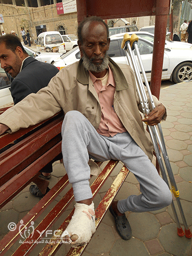 هذا الشيخ الستيني بدأ معاناته مع السكري منذ العام 2000 , ومع تقدمه في السن تمكن هذا الداء الخبيث منه مسببا له مضاعفات كثيرة لعل اسوأها ما يعرف ((بالقدم السكرية )) او ((الغرغرينا )) التي قد تتسبب في بتر القدم , والتي اصابته جراء حدوث تقرحات في قدمه اليمنى خلال تواجده في مدينة الحديدة بفعل الحر الشديد .وكان اشد ما يرعبه هو احتمالات بتر قدمه لوقف انتشار الغرغرينا الى باقي الجسم وهو ما يتم في حالات مشابهة كثيرة , غير ان ارادة الله والعناية الفائقة التي وجدها عند وصوله الى مركز الرحبي الطبي في العاصمة صنعاء الذي تشرف عليه جمعية رعاية الاسرة اليمنية ومشروع حماية اللاجئين , ومن ثم احالته على وجه السرعة الى المستشفى الجمهوري بصنعاء لتلقي الرعاية الصحية المناسبة حالا دون ذلك , ونتج عن ذلك انقاذ قدمه من البتر , وقد اعرب الحاج محمد عن امتنانه مرة اخرى لابناء الشعب اليمني الاصيل الذي استقبله لاجئاً ولم يتركه في محنته وحيدا ..