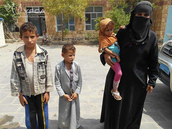 جميلة الراشدي ام لثلاثة اطفال اصيبوا جميعهم بوباء الكوليرا الذي اجتاح قريتهم الصغيرة قرية (الكرب )التي تقع ضمن الزمام السكاني لمستشفى بني سعد بمحافظة المحويت - وهو المستشفى الذي يوجد به مركز معالجة الاسهالات المائية الحادة الذي اقامته جمعية رعاية الاسرة اليمنية بتمويل من مكتب الاوتشا في اليمن بغرض مواجهة وباء الكوليرا الذي انتشر في المدينة بشكل مرعب وحصد عددا من الارواح -.