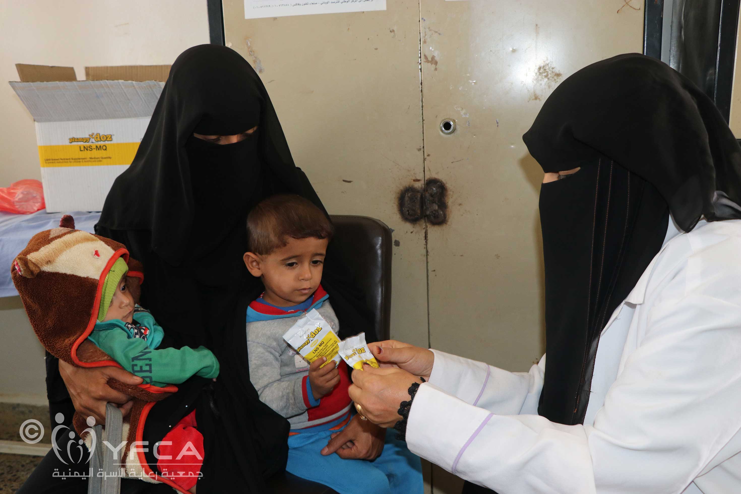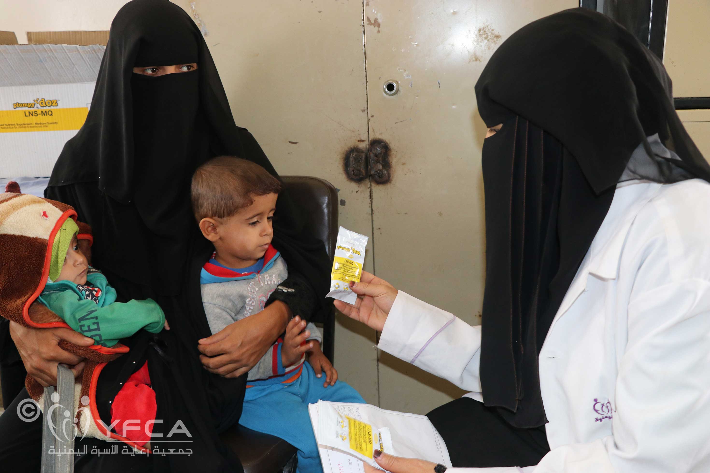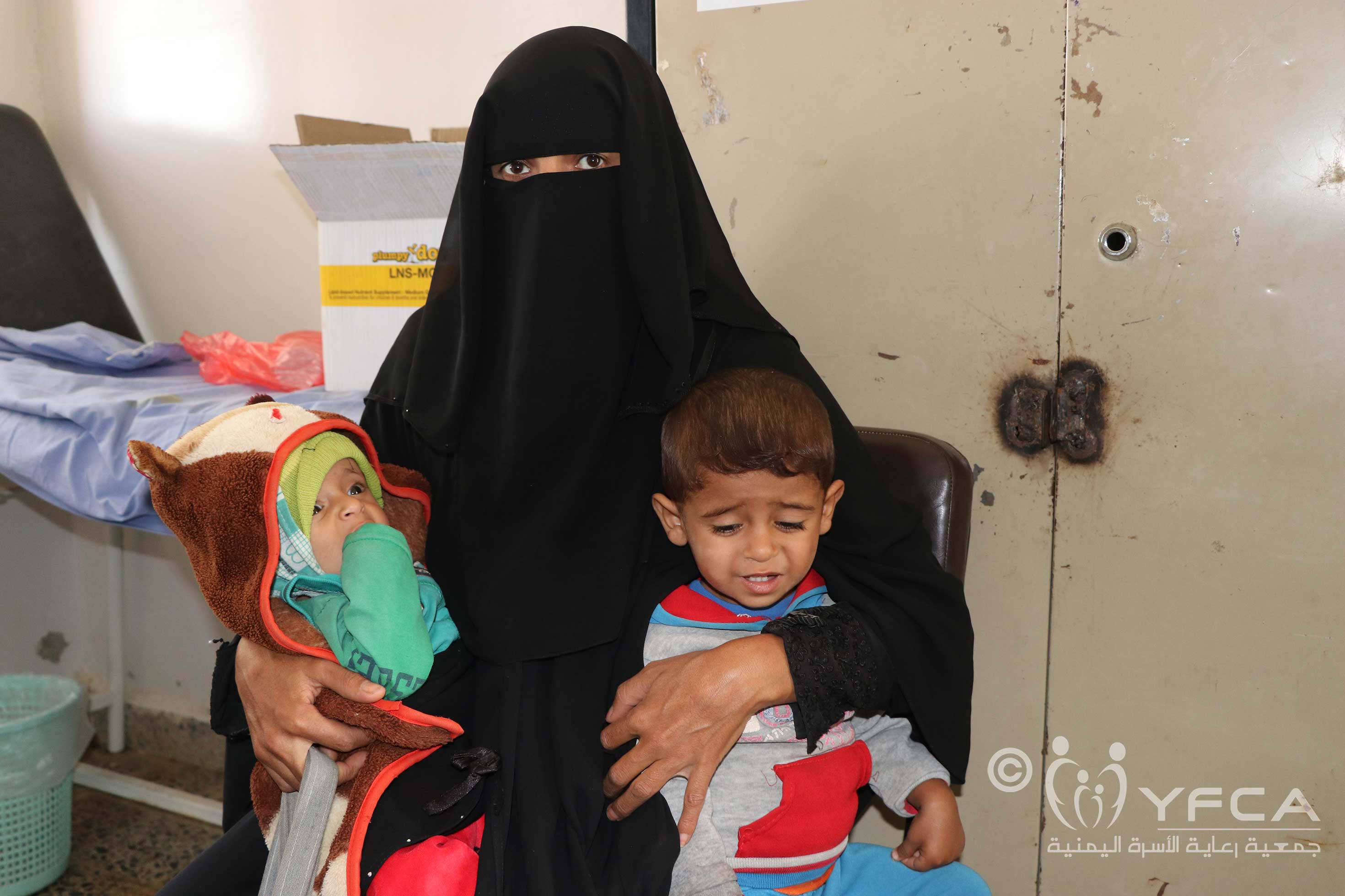 تحرص هدى على التوجه إلى المركز الصحي - المدعوم من جمعية رعاية الأسرة اليمنية والممول من مكتب تنسيق الشؤن الإنسانية التابع للأمم المتحدة (اوتشا) – بمعية طفليها بشكل دوري منذ فترة طويلة وذلك من أجل متابعة حالتهم الصحية و معالجة نقص التغذية الذي يعانوه ..
