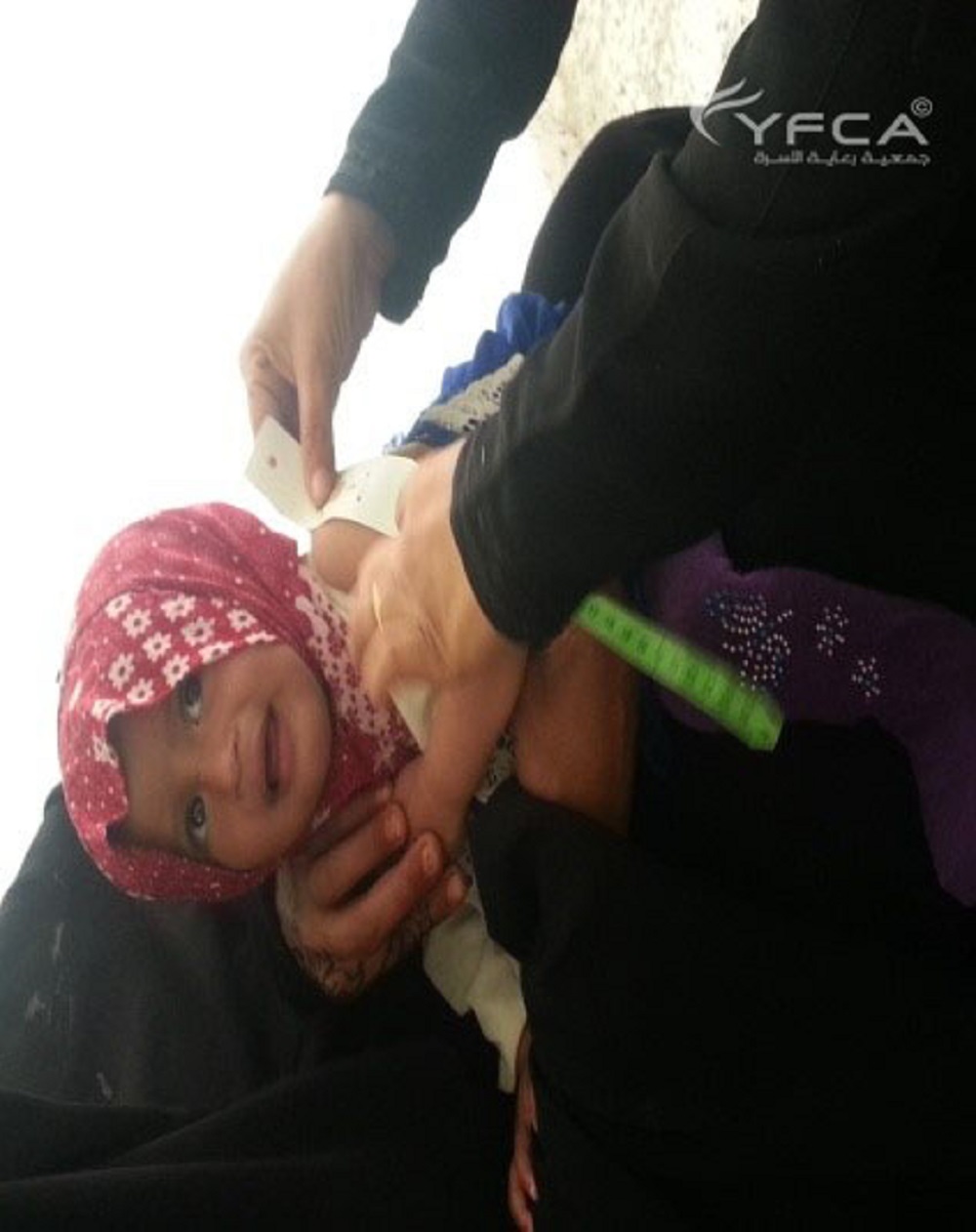 وديان حمير طفلة من ابناء محافظة تعز مديرية حيفان لا يتجاز عمرها السنة وستة أشهر ، كانت وديان تتعرض بشكل شبه دائم لوعكات صحية كالاسهال والحمى بالاضافة الى انها كانت تعاني من ضعف شديد وهزال دائم و هو ما تسبب في عدم قدرتها على الحركة كبقية الاطفال الذين هم في نفس سنها ، وعند ما سمعت ام وديان عن